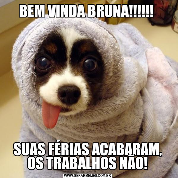 BEM VINDA BRUNA!!!!!! SUAS FÉRIAS ACABARAM, OS TRABALHOS NÃO!