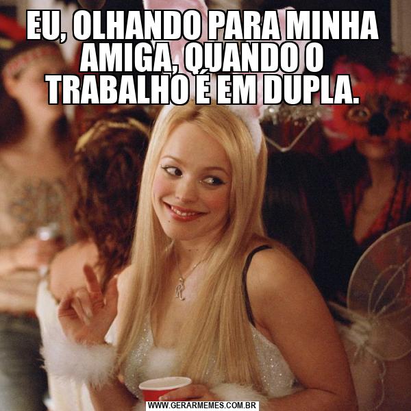 EU, OLHANDO PARA MINHA AMIGA, QUANDO O TRABALHO É EM DUPLA.