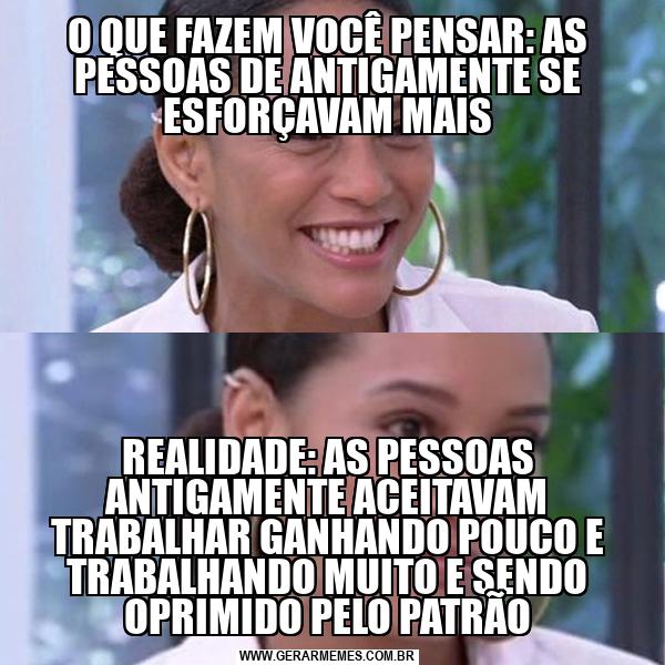 O QUE FAZEM VOCÊ PENSAR: AS PESSOAS DE ANTIGAMENTE SE ESFORÇAVAM MAIS REALIDADE: AS PESSOAS ANTIGAMENTE ACEITAVAM TRABALHAR GANHANDO POUCO E TRABALHANDO MUITO E SENDO OPRIMIDO PELO PATRÃO