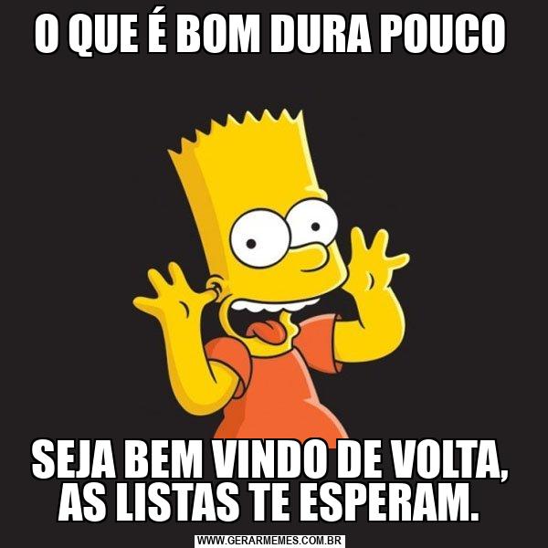 O QUE É BOM DURA POUCO SEJA BEM VINDO DE VOLTA, AS LISTAS TE ESPERAM.
