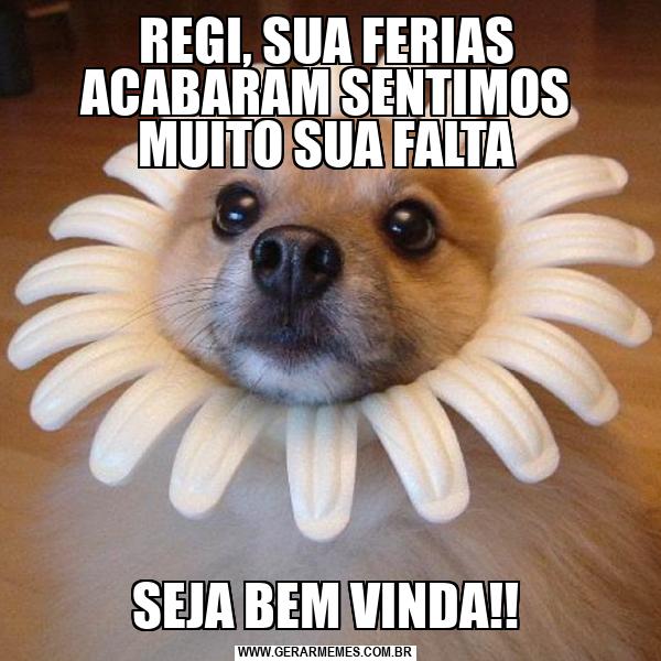 REGI, SUA FERIAS ACABARAM SENTIMOS MUITO SUA FALTA SEJA BEM VINDA!!