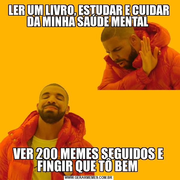 LER UM LIVRO, ESTUDAR E CUIDAR DA MINHA SAÚDE MENTAL VER 200 MEMES SEGUIDOS E FINGIR QUE TÔ BEM