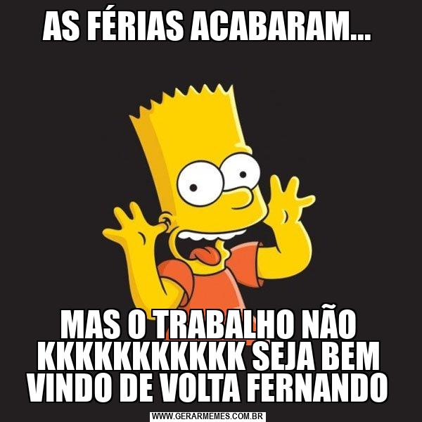 AS FÉRIAS ACABARAM... MAS O TRABALHO NÃO KKKKKKKKKKK SEJA BEM VINDO DE VOLTA FERNANDO