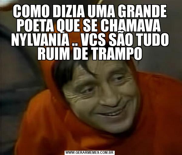 COMO DIZIA UMA GRANDE POETA QUE SE CHAMAVA NYLVANIA .. VCS SÃO TUDO RUIM DE TRAMPO