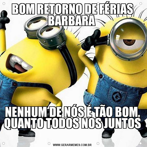 BOM RETORNO DE FÉRIAS BARBARA NENHUM DE NÓS É TÃO BOM, QUANTO TODOS NOS JUNTOS