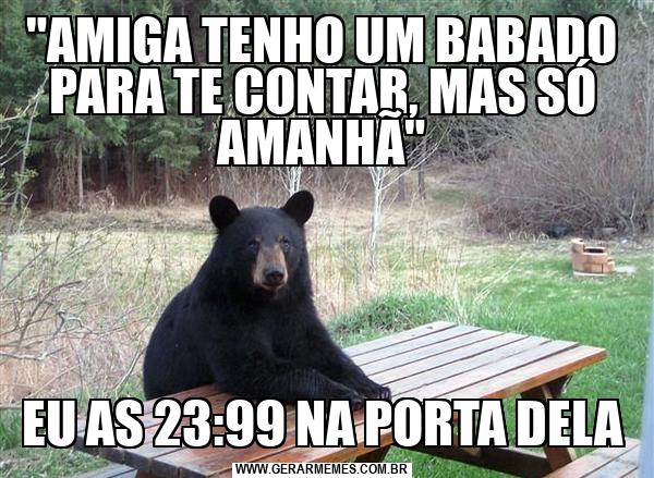 "AMIGA TENHO UM BABADO PARA TE CONTAR, MAS SÓ AMANHÃ" EU AS 23:99 NA PORTA DELA