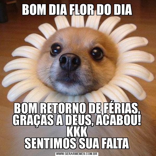BOM DIA FLOR DO DIA BOM RETORNO DE FÉRIAS, GRAÇAS A DEUS, ACABOU! KKK SENTIMOS SUA FALTA