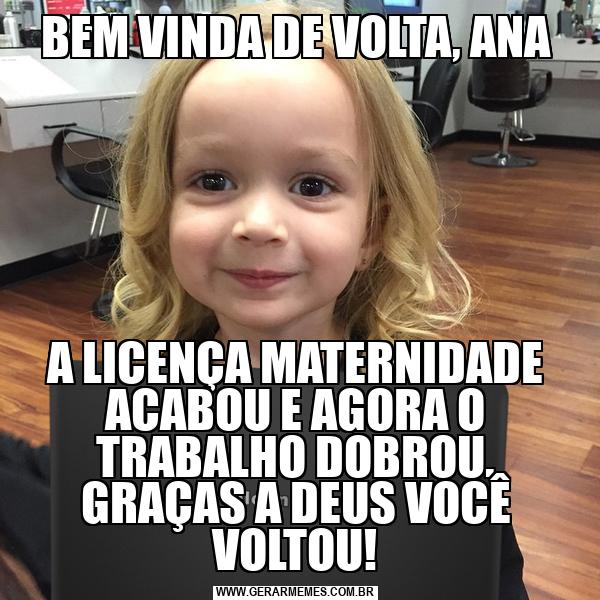 BEM VINDA DE VOLTA, ANA A LICENÇA MATERNIDADE ACABOU E AGORA O TRABALHO DOBROU. GRAÇAS A DEUS VOCÊ VOLTOU!