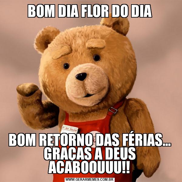 BOM DIA FLOR DO DIA BOM RETORNO DAS FÉRIAS... GRAÇAS A DEUS ACABOOUUU!!