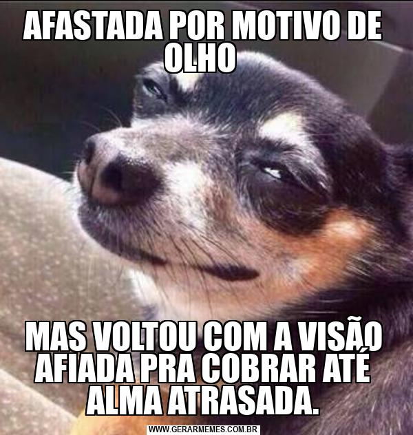 AFASTADA POR MOTIVO DE OLHO MAS VOLTOU COM A VISÃO AFIADA PRA COBRAR ATÉ ALMA ATRASADA.