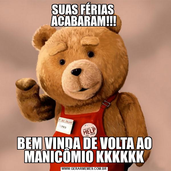 SUAS FÉRIAS ACABARAM!!! BEM VINDA DE VOLTA AO MANICÔMIO KKKKKK