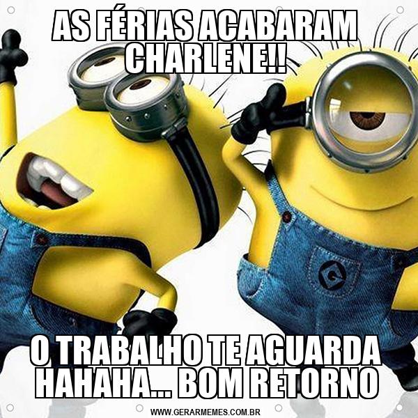 AS FÉRIAS ACABARAM CHARLENE!! O TRABALHO TE AGUARDA HAHAHA... BOM RETORNO