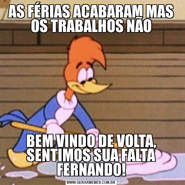 AS FÉRIAS ACABARAM MAS OS TRABALHOS NÃO BEM VINDO DE VOLTA, SENTIMOS SUA FALTA FERNANDO!