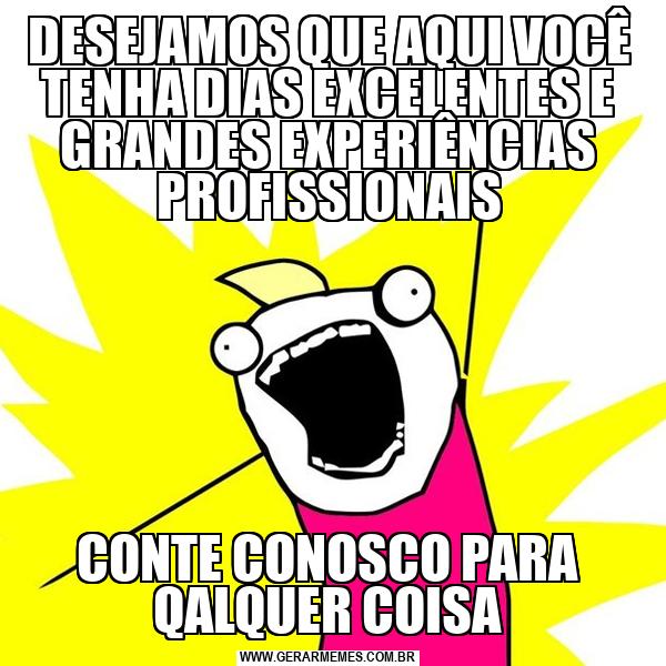 DESEJAMOS QUE AQUI VOCÊ TENHA DIAS EXCELENTES E GRANDES EXPERIÊNCIAS PROFISSIONAIS CONTE CONOSCO PARA QALQUER COISA
