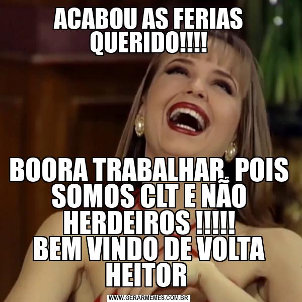 ACABOU AS FERIAS QUERIDO!!!! BOORA TRABALHAR, POIS SOMOS CLT E NÃO HERDEIROS !!!!! BEM VINDO DE VOLTA HEITOR