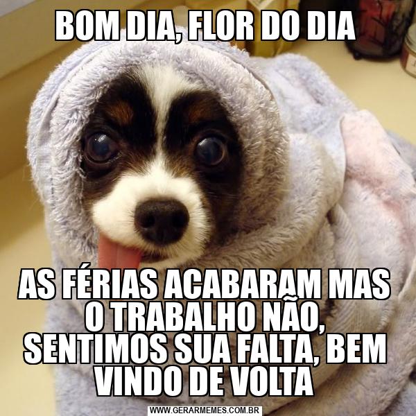 BOM DIA, FLOR DO DIA AS FÉRIAS ACABARAM MAS O TRABALHO NÃO, SENTIMOS SUA FALTA, BEM VINDO DE VOLTA