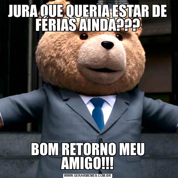 JURA QUE QUERIA ESTAR DE FÉRIAS AINDA??? BOM RETORNO MEU AMIGO!!!