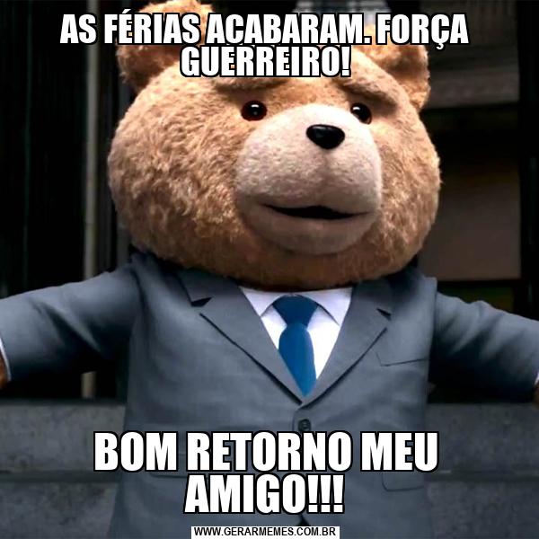 AS FÉRIAS ACABARAM. FORÇA GUERREIRO! BOM RETORNO MEU AMIGO!!!