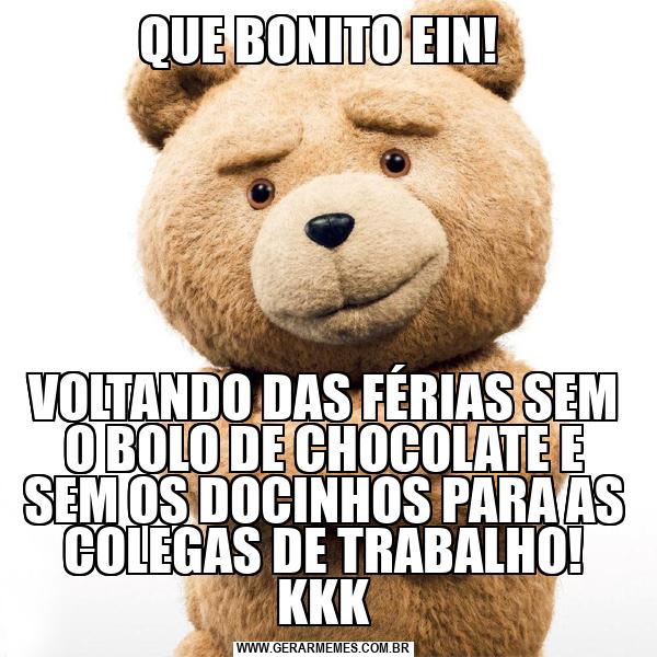 QUE BONITO EIN! VOLTANDO DAS FÉRIAS SEM O BOLO DE CHOCOLATE E SEM OS DOCINHOS PARA AS COLEGAS DE TRABALHO! KKK