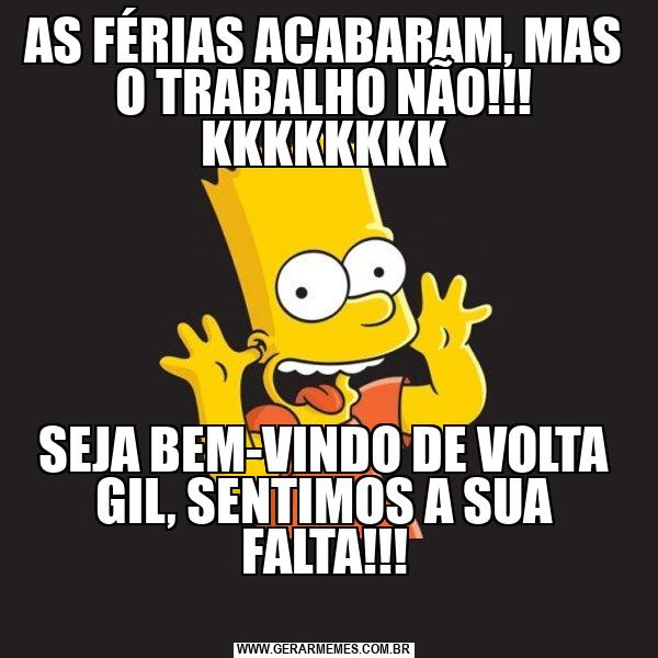 AS FÉRIAS ACABARAM, MAS O TRABALHO NÃO!!! KKKKKKKK SEJA BEM-VINDO DE VOLTA GIL, SENTIMOS A SUA FALTA!!!