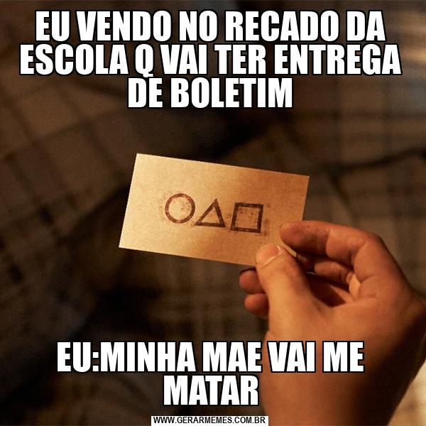 EU VENDO NO RECADO DA ESCOLA Q VAI TER ENTREGA DE BOLETIM EU:MINHA MAE VAI ME MATAR