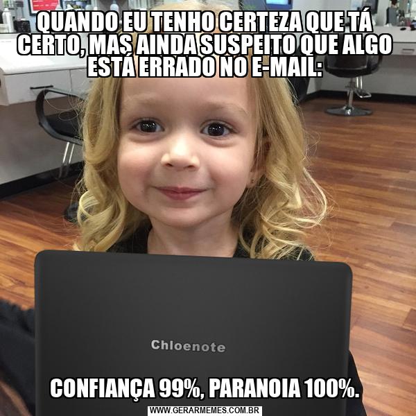 QUANDO EU TENHO CERTEZA QUE TÁ CERTO, MAS AINDA SUSPEITO QUE ALGO ESTÁ ERRADO NO E-MAIL: CONFIANÇA 99%, PARANOIA 100%.