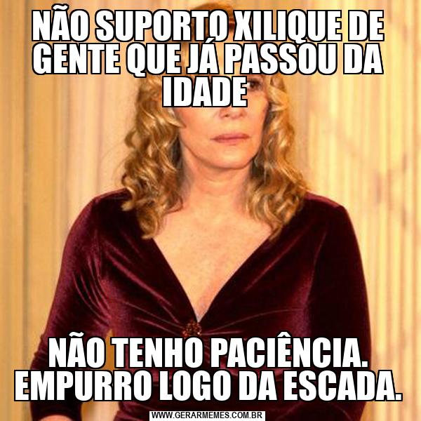NÃO SUPORTO XILIQUE DE GENTE QUE JÁ PASSOU DA IDADE NÃO TENHO PACIÊNCIA. EMPURRO LOGO DA ESCADA.