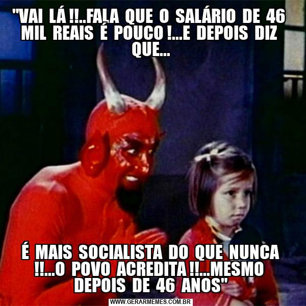 "VAI LÁ !!..FALA QUE O SALÁRIO DE 46 MIL REAIS É POUCO !...E DEPOIS DIZ QUE... É MAIS SOCIALISTA DO QUE NUNCA !!...O POVO ACREDITA !!...MESMO DEPOIS DE 46 ANOS"