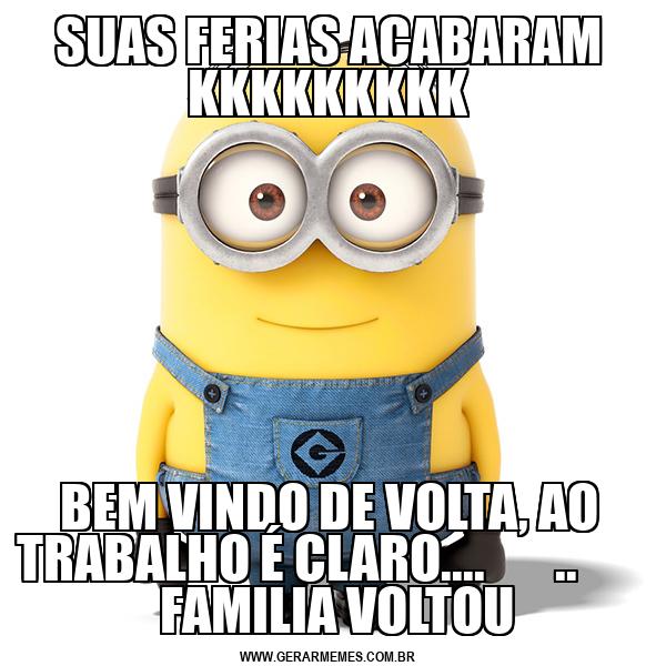 SUAS FERIAS ACABARAM KKKKKKKKK BEM VINDO DE VOLTA, AO TRABALHO É CLARO.... .. FAMILIA VOLTOU