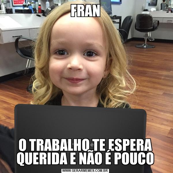 FRAN O TRABALHO TE ESPERA QUERIDA E NÃO É POUCO
