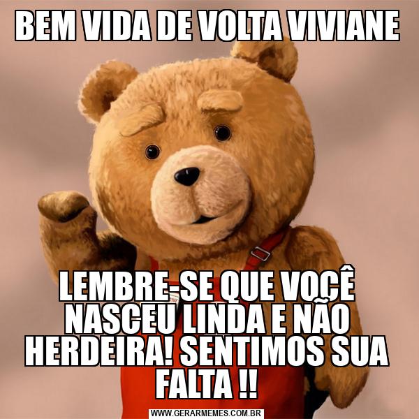 BEM VIDA DE VOLTA VIVIANE LEMBRE-SE QUE VOCÊ NASCEU LINDA E NÃO HERDEIRA! SENTIMOS SUA FALTA !!