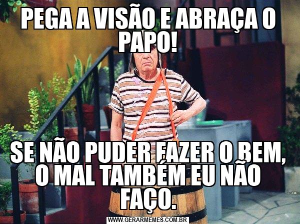 PEGA A VISÃO E ABRAÇA O PAPO! SE NÃO PUDER FAZER O BEM, O MAL TAMBÉM EU NÃO FAÇO.