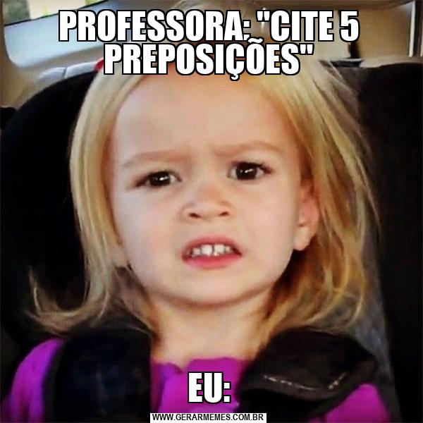 PROFESSORA: "CITE 5 PREPOSIÇÕES" EU: