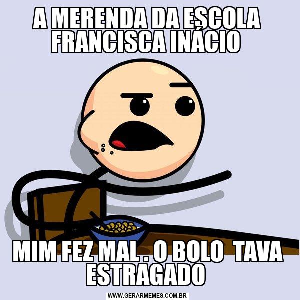 A MERENDA DA ESCOLA FRANCISCA INÁCIO MIM FEZ MAL . O BOLO TAVA ESTRAGADO