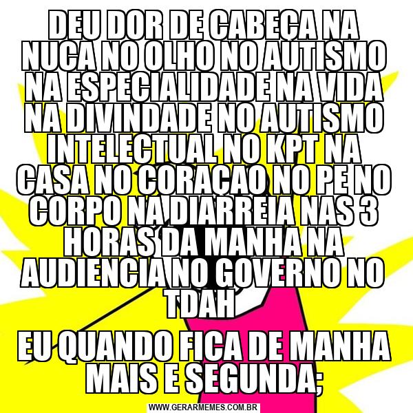 DEU DOR DE CABEÇA NA NUCA NO OLHO NO AUTISMO NA ESPECIALIDADE NA VIDA NA DIVINDADE NO AUTISMO INTELECTUAL NO KPT NA CASA NO CORAÇAO NO PE NO CORPO NA DIARREIA NAS 3 HORAS DA MANHA NA AUDIENCIA NO GOVERNO NO TDAH EU QUANDO FICA DE MANHA MAIS E SEGUNDA;