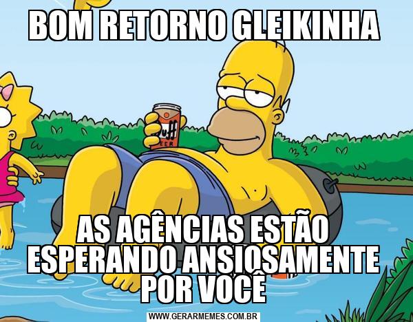 BOM RETORNO GLEIKINHA AS AGÊNCIAS ESTÃO ESPERANDO ANSIOSAMENTE POR VOCÊ