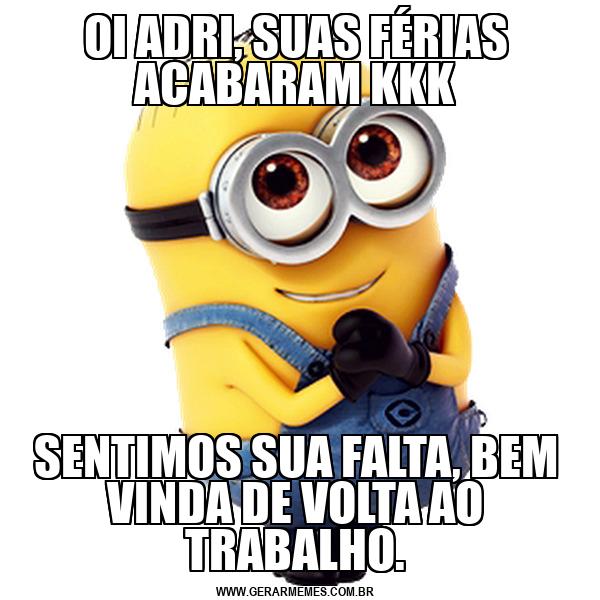 OI ADRI, SUAS FÉRIAS ACABARAM KKK SENTIMOS SUA FALTA, BEM VINDA DE VOLTA AO TRABALHO.