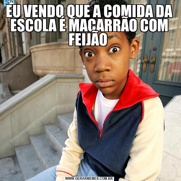EU VENDO QUE A COMIDA DA ESCOLA É MACARRÃO COM FEIJÃO