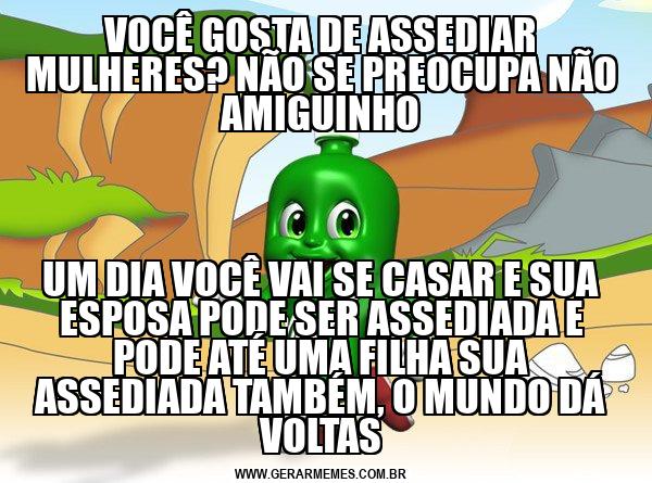 VOCÊ GOSTA DE ASSEDIAR MULHERES? NÃO SE PREOCUPA NÃO AMIGUINHO UM DIA VOCÊ VAI SE CASAR E SUA ESPOSA PODE SER ASSEDIADA E PODE ATÉ UMA FILHA SUA ASSEDIADA TAMBÉM, O MUNDO DÁ VOLTAS