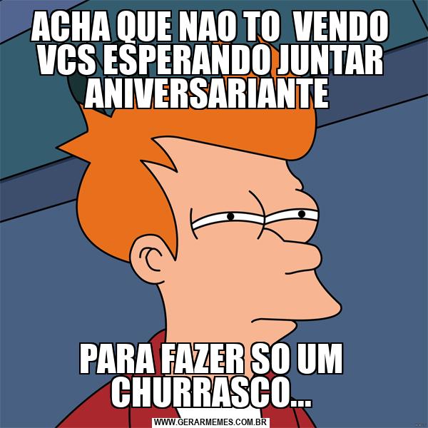 ACHA QUE NAO TO VENDO VCS ESPERANDO JUNTAR ANIVERSARIANTE PARA FAZER SO UM CHURRASCO...