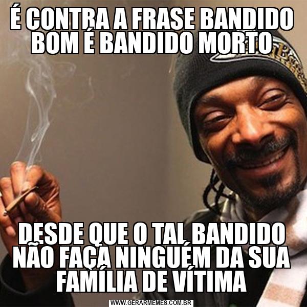 É CONTRA A FRASE BANDIDO BOM É BANDIDO MORTO DESDE QUE O TAL BANDIDO NÃO FAÇA NINGUÉM DA SUA FAMÍLIA DE VÍTIMA