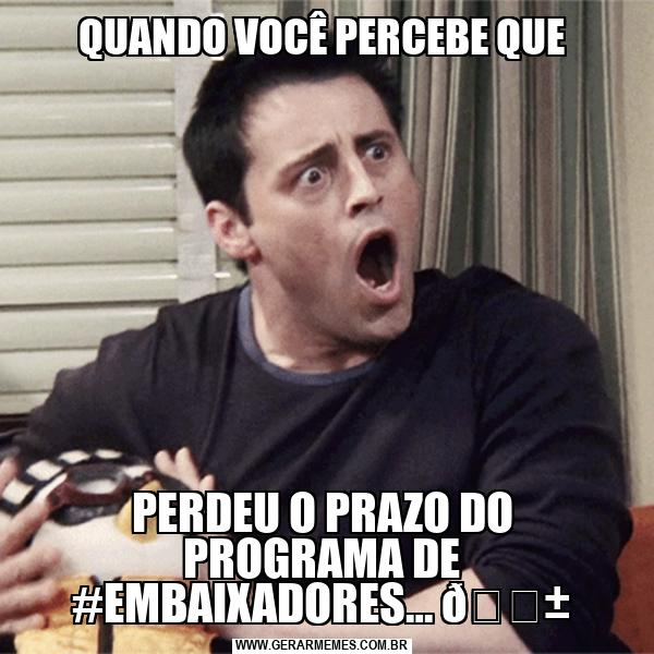 QUANDO VOCÊ PERCEBE QUE PERDEU O PRAZO DO PROGRAMA DE #EMBAIXADORES…