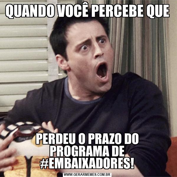 QUANDO VOCÊ PERCEBE QUE PERDEU O PRAZO DO PROGRAMA DE #EMBAIXADORES!