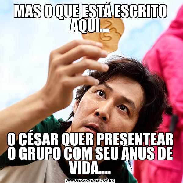 MAS O QUE ESTÁ ESCRITO AQUI... O CÉSAR QUER PRESENTEAR O GRUPO COM SEU ÂNUS DE VIDA....