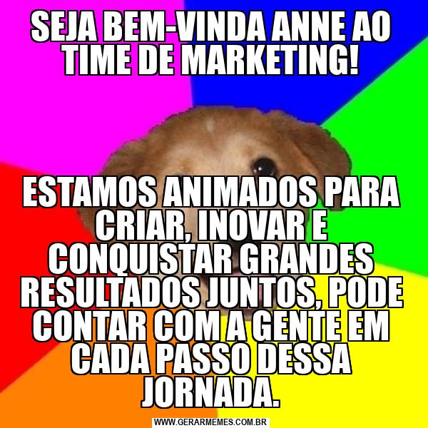 SEJA BEM-VINDA ANNE AO TIME DE MARKETING! ESTAMOS ANIMADOS PARA CRIAR, INOVAR E CONQUISTAR GRANDES RESULTADOS JUNTOS, PODE CONTAR COM A GENTE EM CADA PASSO DESSA JORNADA.
