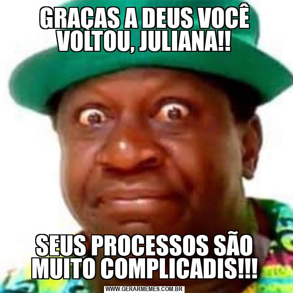 GRAÇAS A DEUS VOCÊ VOLTOU, JULIANA!! SEUS PROCESSOS SÃO MUITO COMPLICADIS!!!