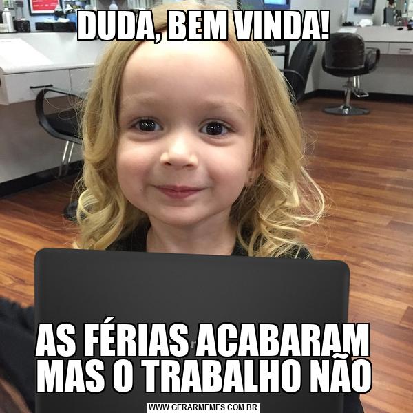DUDA, BEM VINDA! AS FÉRIAS ACABARAM MAS O TRABALHO NÃO