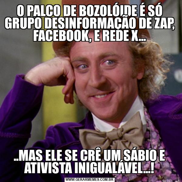 O PALCO DE BOZOLÓIDE É SÓ GRUPO DESINFORMAÇÃO DE ZAP, FACEBOOK, E REDE X... ..MAS ELE SE CRÊ UM SÁBIO E ATIVISTA INIGUALÁVEL...!