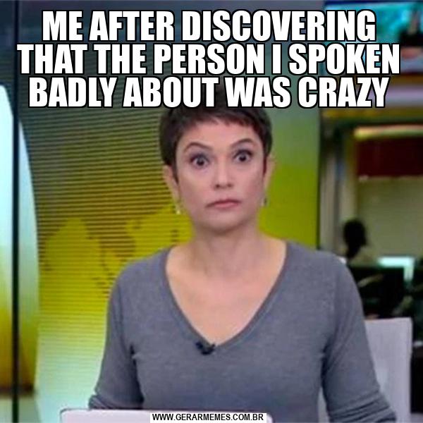 ME AFTER DISCOVERING THAT THE PERSON I SPOKEN BADLY ABOUT WAS CRAZY