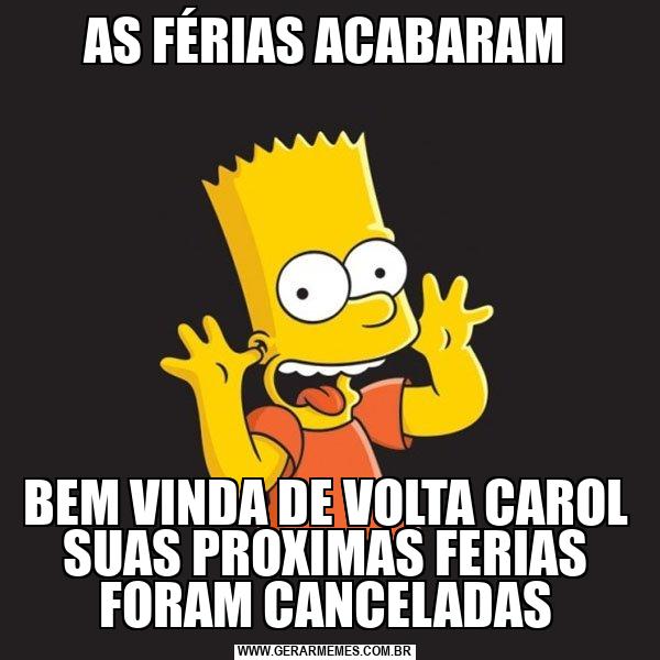 AS FÉRIAS ACABARAM BEM VINDA DE VOLTA CAROL SUAS PROXIMAS FERIAS FORAM CANCELADAS